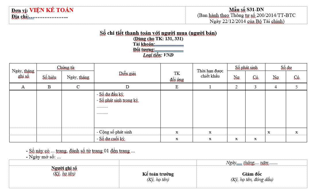 Mẫu Sổ chi tiết thanh toán với người mua (người bán) (S31-DN)